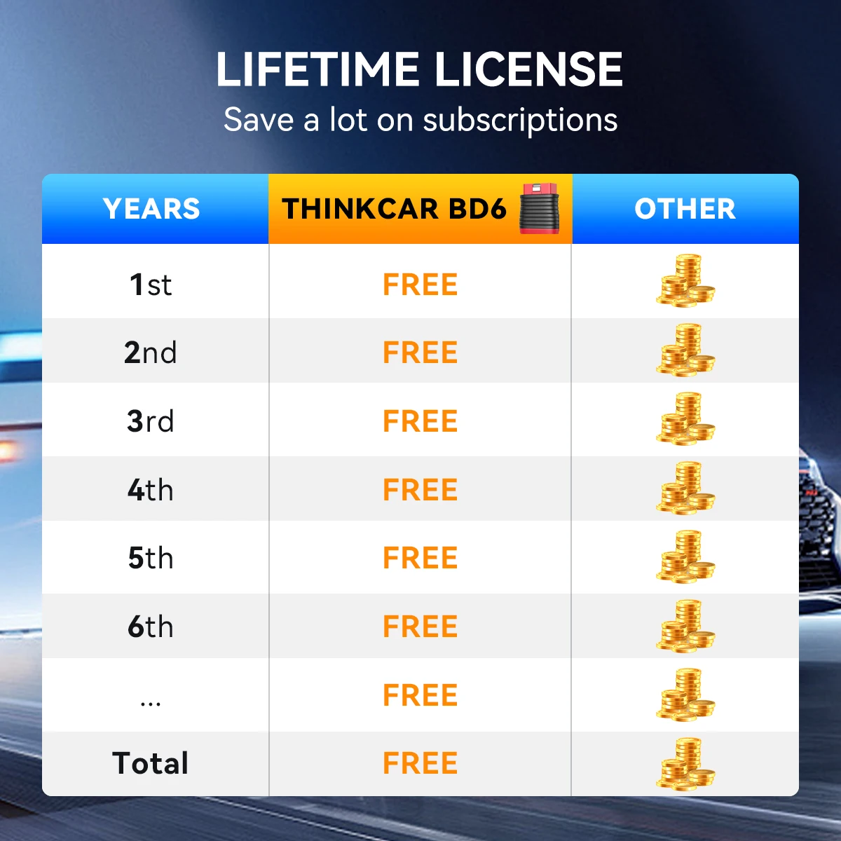 THINKCAR BD6 is a Bluetooth all-system OBD2 scanner that turns your smartphone into a professional car diagnostic tool.